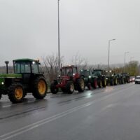Αγρότες από τα Φάρσαλα ενισχύουν με τρακτέρ τρίτη φορά το μπλόκο της Νίκαιας στην Λάρισα