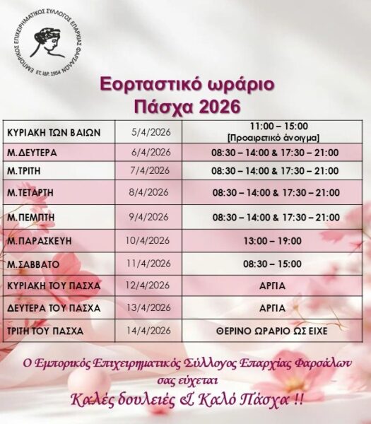 Το Πασχαλινό ωράριο στα Φάρσαλα