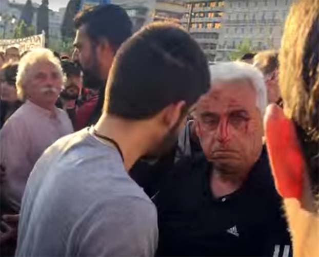 Με εγκεφαλική διάσειση από πολλά χτυπήματα και εκδορές στο πρόσωπο νοσηλεύεται από αργά το απόγευμα της Κυριακής στο νοσοκομείο ΚΑΤ της Αθήνας ο πρόεδρος του Αγροτικού Συνεταιρισμού Λαρισαίων Αγροτών Χρήστος Σιδερόπουλος, ο οποίος νωρίτερα δέχθηκε άνανδρη επίθεση στη συγκέντρωση διαμαρτυρίας έξω από τη βουλή.