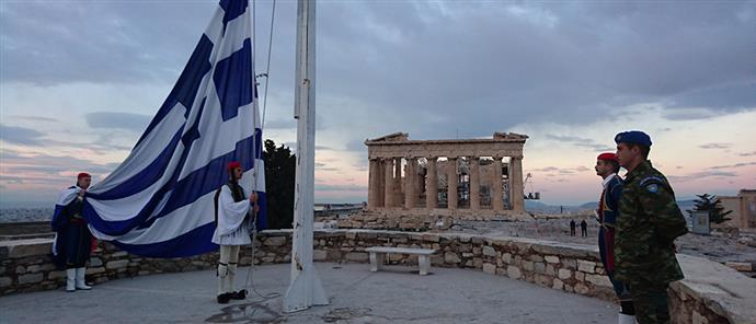 Οι φωτογραφίες του Νίκου Παναγιωτόπουλου που ακολούθησε τους Εύζωνες, στην διαδικασία της έπαρσης της σημαίας που θύμιζε ιεροτελεστία, είναι κάτι παραπάνω από εντυπωσιακές, σύμφωνα με το ρεπορτάζ του bloko.gr.