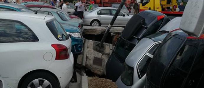 Έκπληκτοι έμειναν οι κάτοικοι του Ταύρου όταν είδαν τη γη να ανοίγει και να “καταπίνει” τρία αυτοκίνητα!