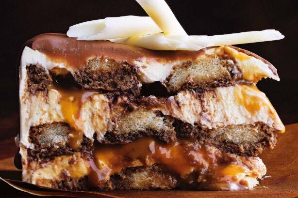 - Συνδυάστε τον καφέ, λικέρ και το σιρόπι καραμέλα ,περάστε από εκεί τα μπισκότα για μερικά Δευτερόλεπτα.