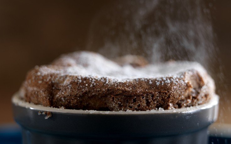 - Κόβουμε το σουφλέ σε μερίδες και το περιχύνουμε με τη σάλτσα.