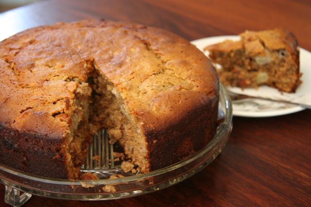 - Μεταφέρουμε το μείγμα στη φόρμα του κέικ και ψήνουμε στο φούρνο για 45-50 λεπτά. Δοκιμάζουμε αν είναι έτομο μπήγοντας στο κέικ τη λάμα ενός μικρού μαχαιριού. Αν βγει στεγνή είναι έτοιμο, αν όχι το αφήνουμε ακόμα λίγο στον φούρνο.