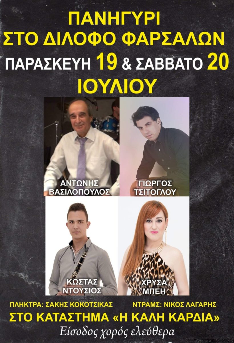 Πανηγύρι στο Δίλοφο Φαρσάλων 19 και 20 Ιουλίου στην ταβέρνα “Η Καλή Καρδιά”.