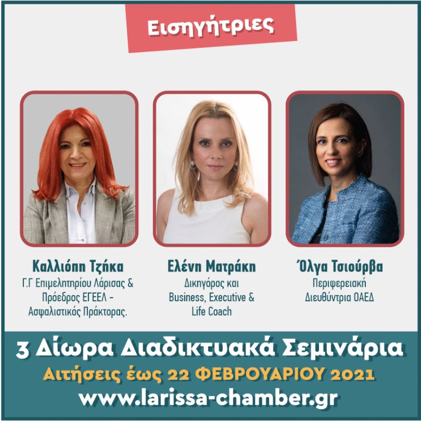 Οι ενδιαφερόμενες θα πρέπει να δηλώσουν συμμετοχή έως τις 22 Φεβρουαρίου 2021. Η συμμετοχή στο πρόγραμμα είναι εντελώς δωρεάν και θα τηρηθεί σειρά προτεραιότητας καθώς οι θέσεις είναι περιορισμένες. Περισσότερες πληροφορίες υπάρχουν στην ιστοσελίδα του Επιμελητηρίου Λάρισας www.larissa-chamber.gr
