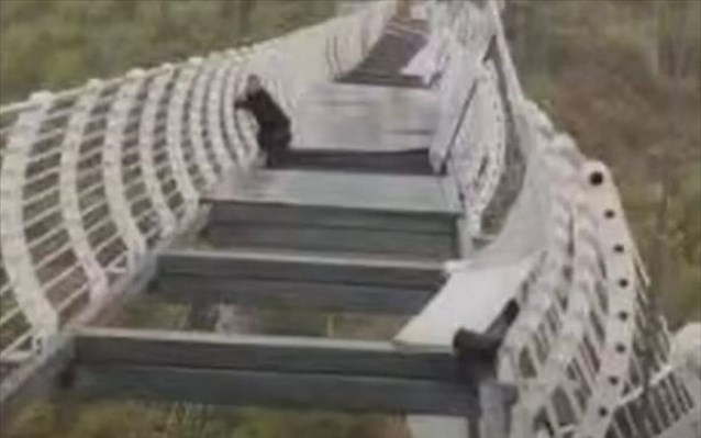 Λαχτάρησε ένας τουρίστας που επισκέφτηκε μία από τις περίπου 2.300 γυάλινες γέφυρες της Κίνας. Ο άντρας έμεινε κρεμασμένος από τη γέφυρα ύψους 100 μέτρων στο βουνό Piyan, στα βορειοανατολικά της χώρας, όταν αρκετά κομμάτια του γυάλινου δαπέδου έσπασαν από ανέμους που έφταναν τα 150 χλμ την ώρα.