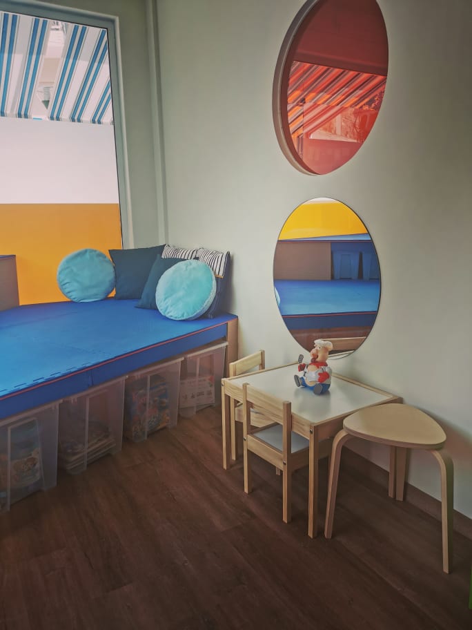 Σ’ ένα χώρο ειδικά διαμορφωμένο για τα παιδιά, με διαφορετικές γωνιές παιχνιδιού, εργασίας και χαλάρωσης προσπαθήσαμε να δημιουργήσουμε το κατάλληλο περιβάλλον και τις συνθήκες εκείνες που να ευνοούν την ανάπτυξη των δεξιοτήτων τους, την άνεση, την αυτονομία αλλά και την ψυχαγωγία τους.