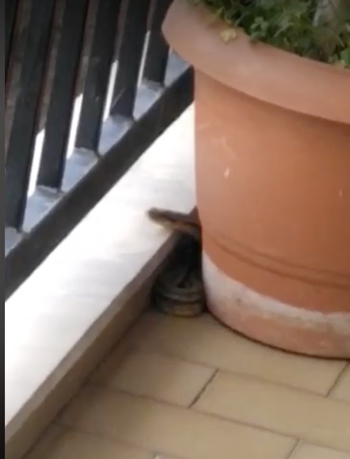 Συγκεκριμένα, το φίδι εντόπισε αρχικά η γειτόνισσα, όπου και ειδοποίησε την ιδιοκτήτρια για τον απρόσκλητο επισκέπτη που είχε στο μπαλκόνι της και που είχε βρει την ηρεμία του μεταξύ γλάστρας και τοιχίου του μπαλκονιού, ακριβώς κάτω από τα κάγκελα. Εντωμεταξύ η ίδια έχει σκύλο στο σπίτι, όπου το είχε εντοπίσει νωρίτερα και γάβγιζε ασταμάτητα.