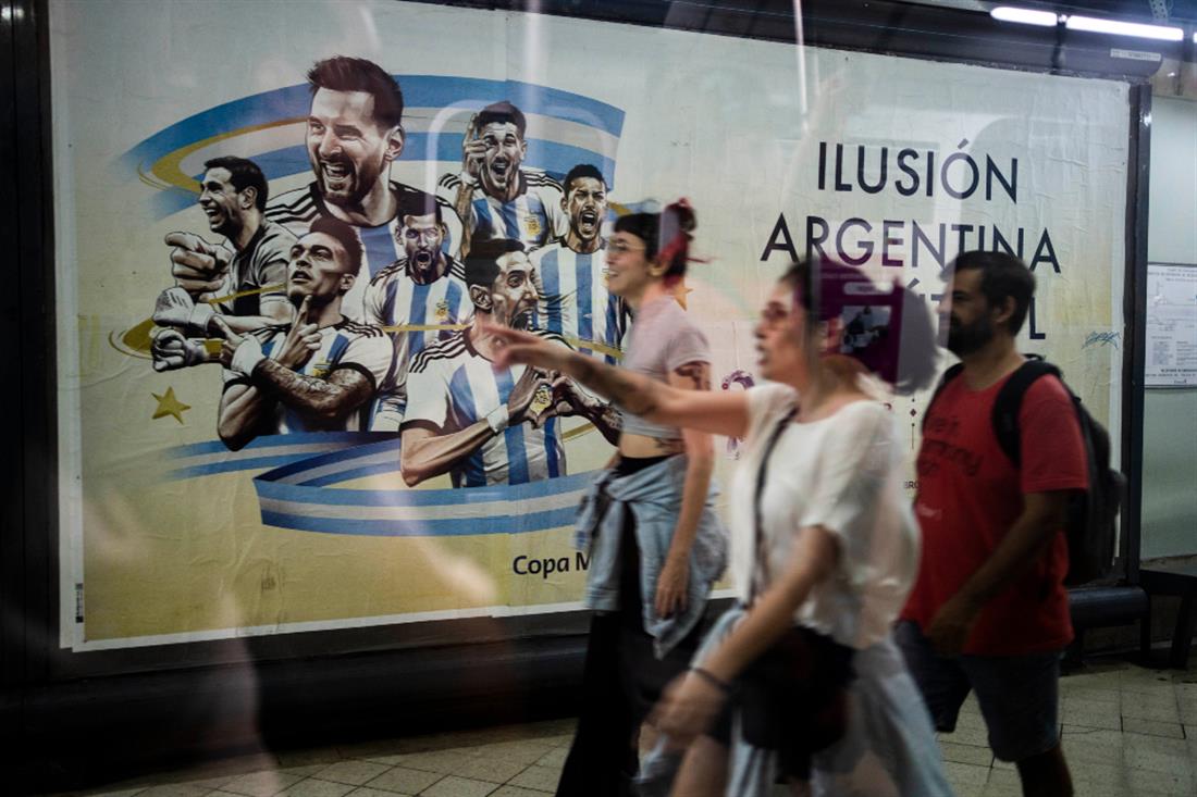 Στην κοντινή πόλη Σεροντίνο, μια τεράστια φανέλα με το Νο. 10 του Μέσι, διαστάσεων 12 επί 18 μέτρων, κυματίζει στον αέρα πάνω από τους δρόμους, σε ένδειξη φόρου τιμής στην Αργεντινή, η οποία θα παίξει με τη Γαλλία στον τελικό του Μουντιάλ 2022 την Κυριακή, στο Κατάρ.