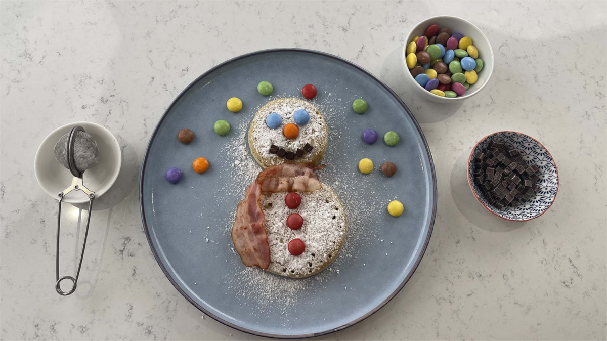Φτιάξτε πάνκεϊκς σε μορφή τάρανδου, Άγιου Βασίλη, χιονάνθρωπου και ό,τι άλλο βάλετε στο μυαλό σας. Είναι πιο απλό απ’ ότι ακούγεται αφού θα διαπιστώσετε πως το μόνο που χρειάζεται είναι να συνδυάσετε κάποια σχήματα για να φτιάξετε τη φιγούρα που σας αρέσει μαζί με κάποια υλικά που έχουμε όλοι στην κουζίνα όπως φρούτα, αλλαντικά, τυρί, σταγόνες σοκολάτας, ζάχαρη άχνη, κανέλα κτλ. Αν μάλιστα αφήστε τα παιδιά να διακοσμήσουν τα πιάτα το αποτέλεσμα εκτός από μοναδικό θα είναι και πολύ διασκεδαστικό για όλους σας.