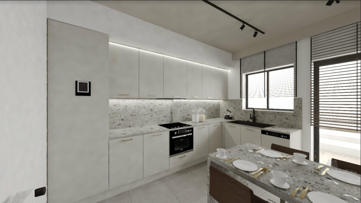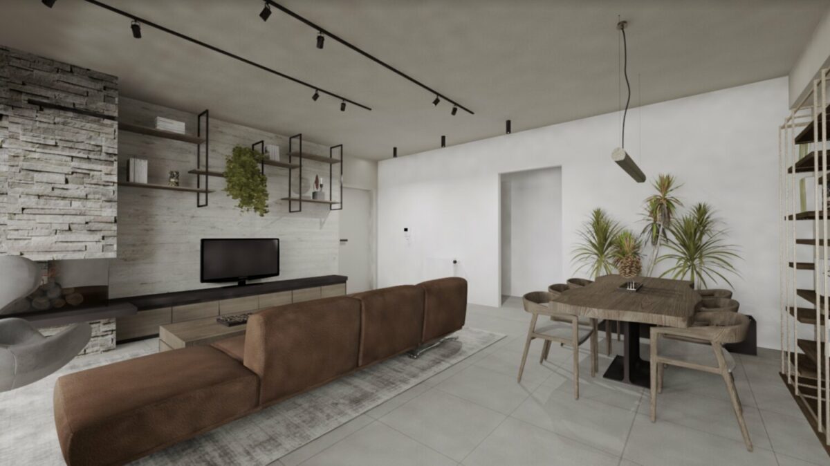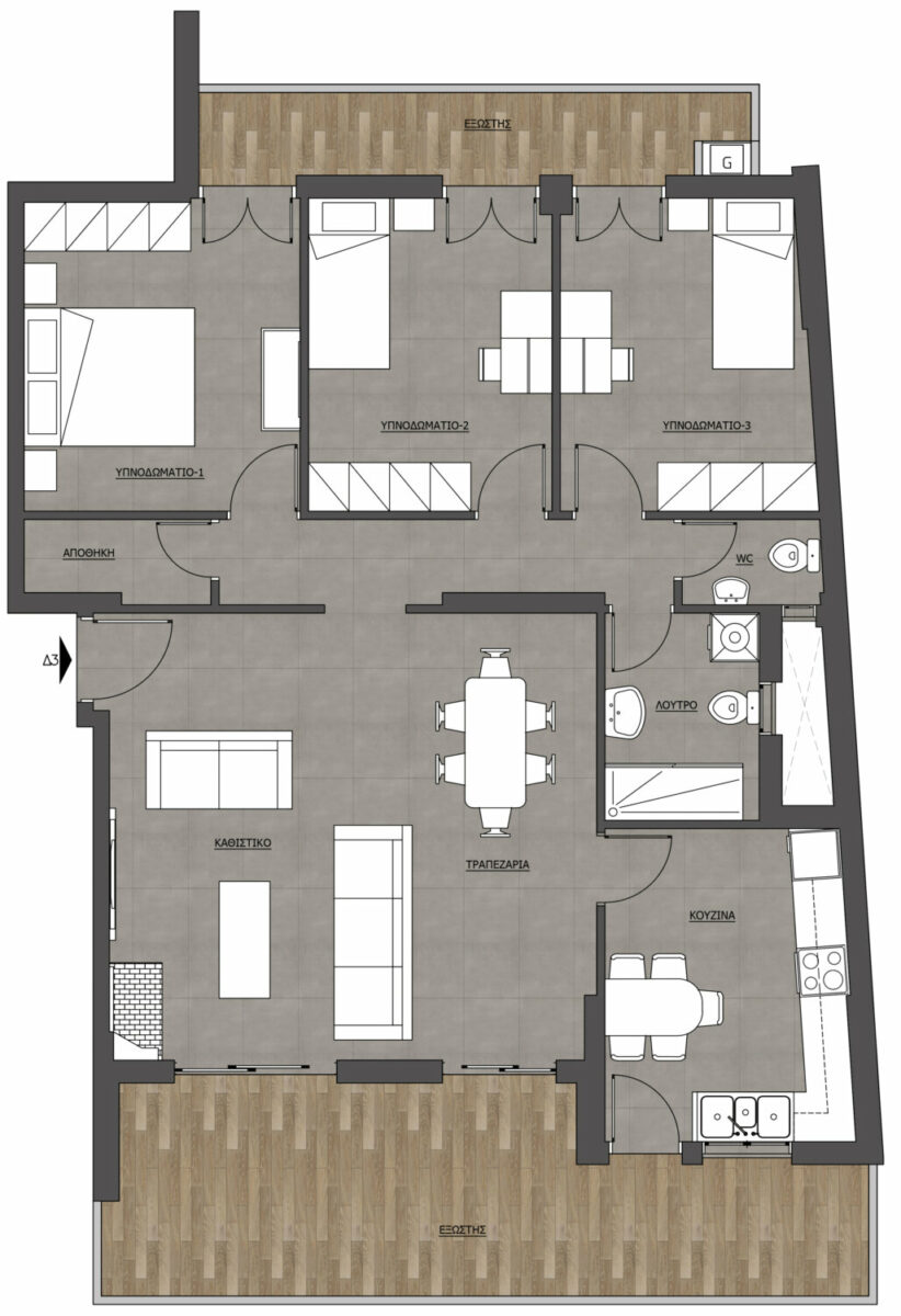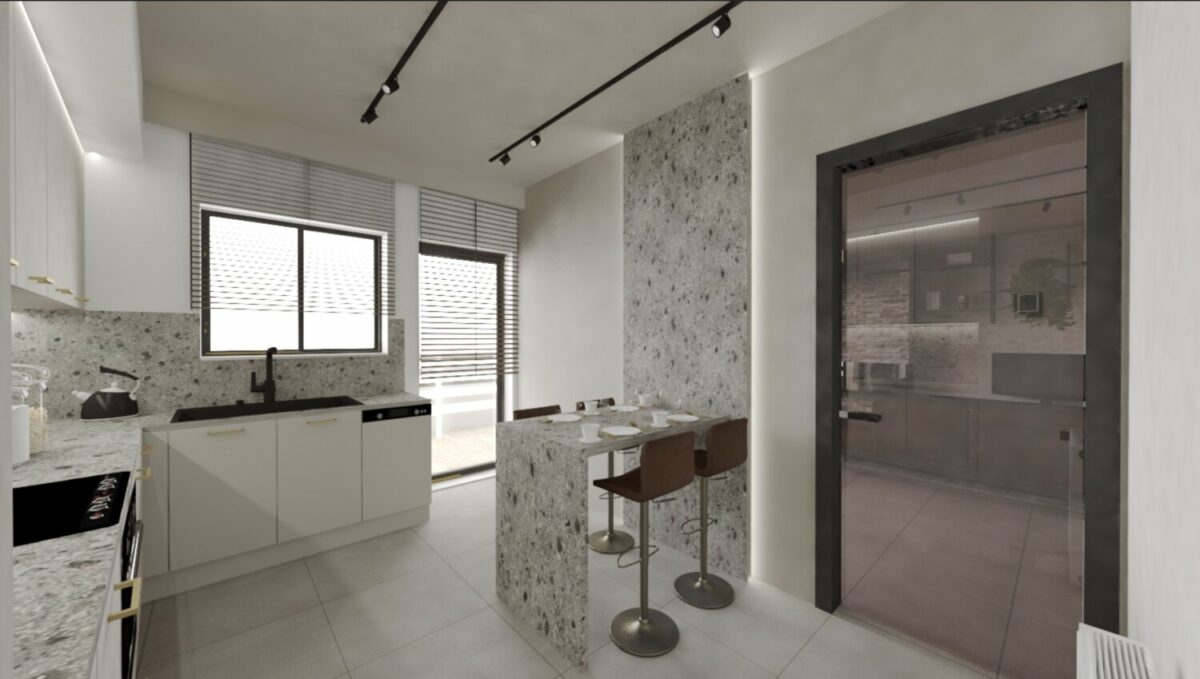 Η κατοικία εμβαδού 108,22 τ.μ που αναπτύσσεται σε κάθε όροφο του δυτικού τμήματος του κτιρίου Θ Ε Τ Ι S έχει σχεδιαστεί από την GROUND PLAN για να μπορεί να καλύψει τις ανάγκες τετραμελούς οικογένειας.
