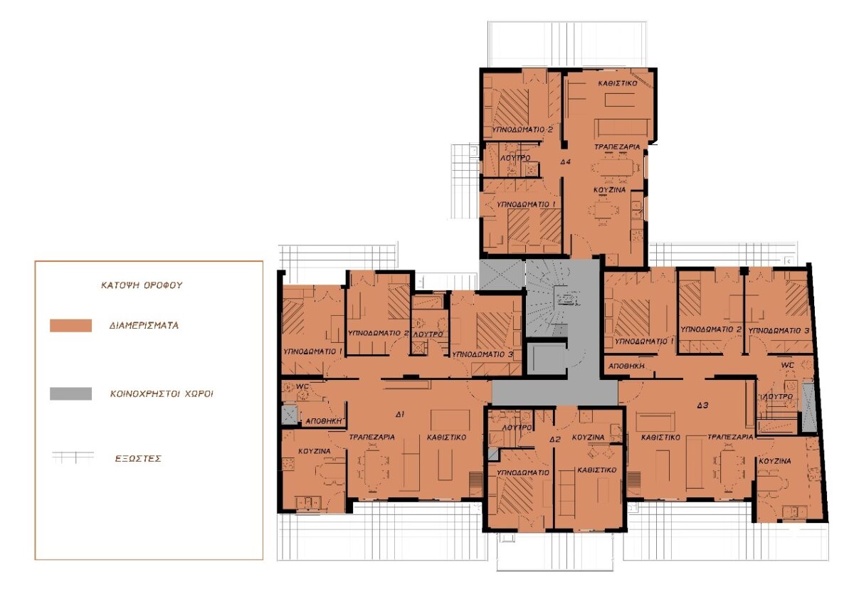 Πρόκειται για διαμπερή διαμερίσματα με φυσικό φωτισμό και αερισμό σε όλους τους χώρους και ατομική θέση στάθμευσης και αποθήκης στον χώρο της pilotis.