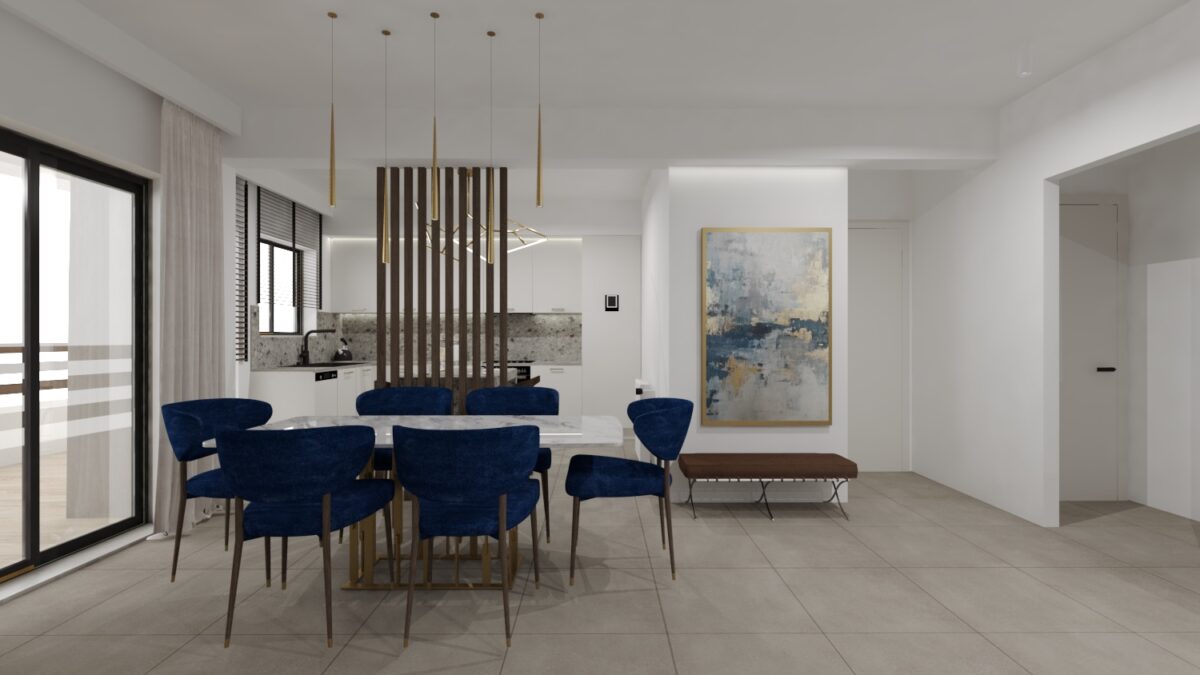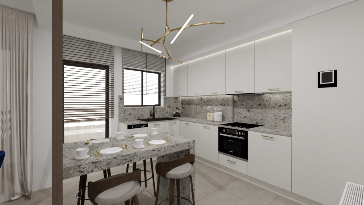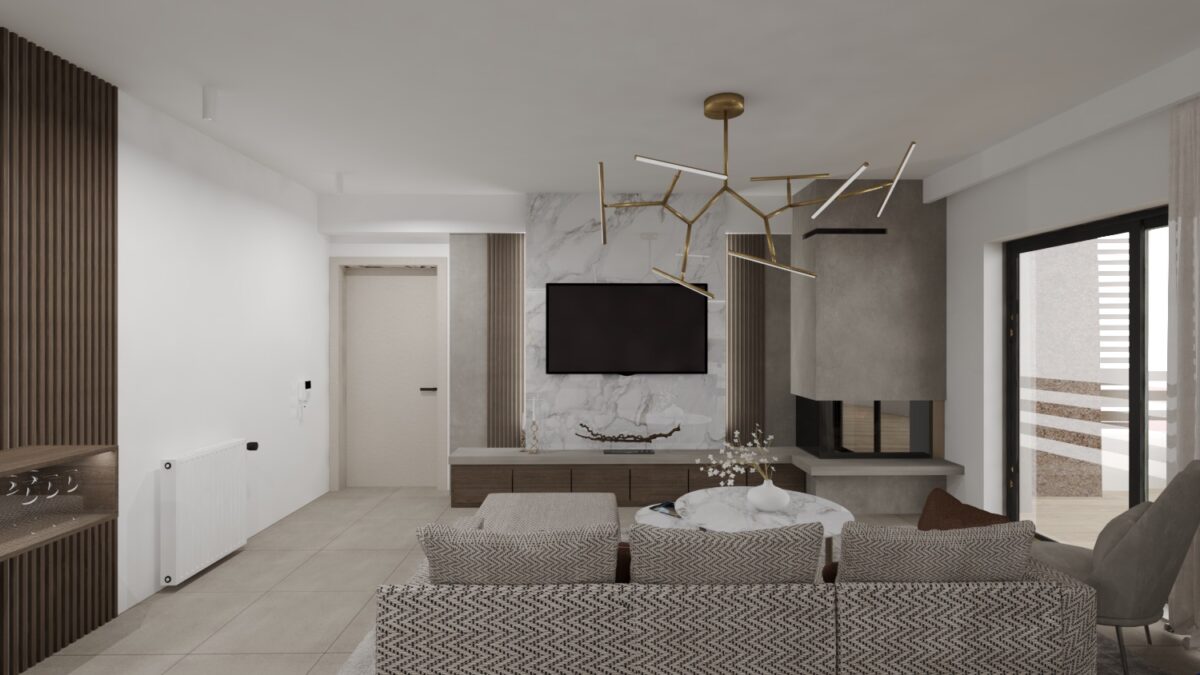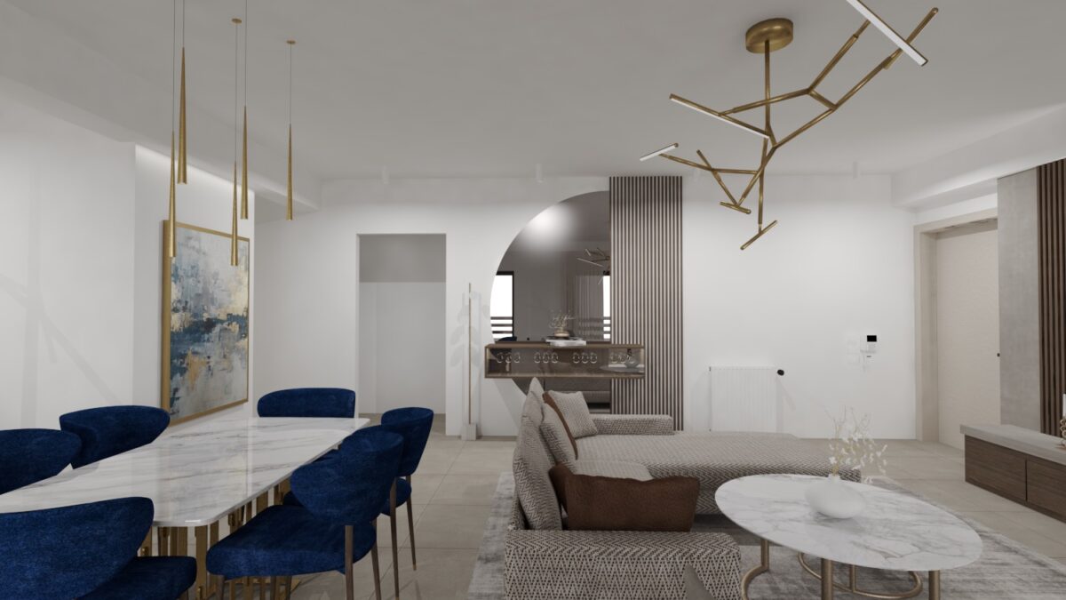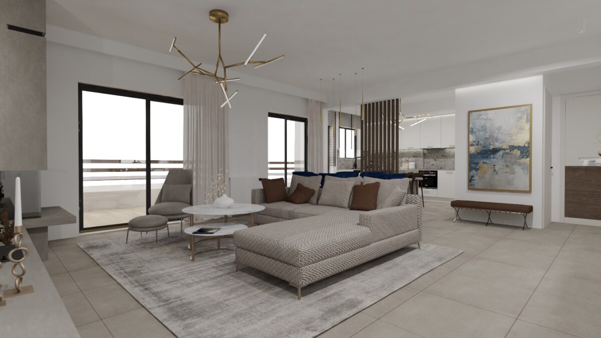 Η κατοικία εμβαδού 109,74 τ.μ που αναπτύσσεται σε κάθε όροφο του ανατολικού τμήματος του κτιρίου Θ Ε Τ Ι S έχει σχεδιαστεί από την GROUND PLAN για να μπορεί να καλύψει τις ανάγκες τετραμελούς οικογένειας.