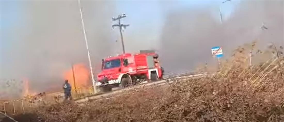 Η φωτιά για την ώρα δεν απειλεί κατοικίες.