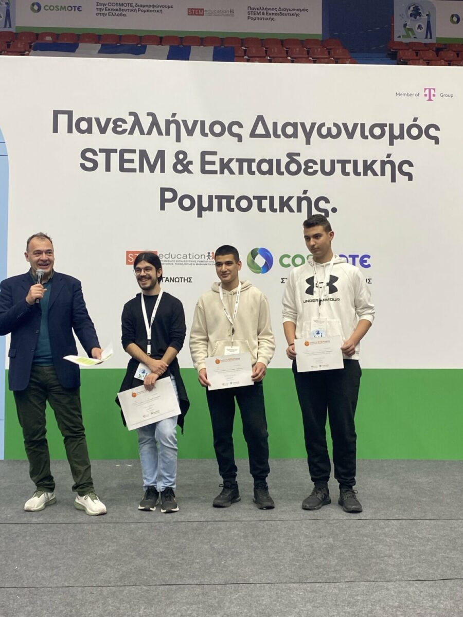 Η ομάδα αποτελείται από τον Νικολακούλη Στέφανο, μαθητή Α΄Λυκειου , του γενικού Λυκείου Νίκαιας και τον Απόστολο Δημακόπουλου επίσης μαθητή της Α΄Λυκείου των εκπαιδευτηρίων Μ.Ν.Ράπτου. Οι μαθητές κατέλαβαν την 1η θέση στην κατηγορία REGULAR Λυκείου Προχωρημένοι και προκρίθηκαν στους προκριματικούς για την Ολυμπιάδα Εκπαιδευτικής Ρομποτικής STEM που φέτος θα διεξαχθεί στη Σιγκαπούρη.