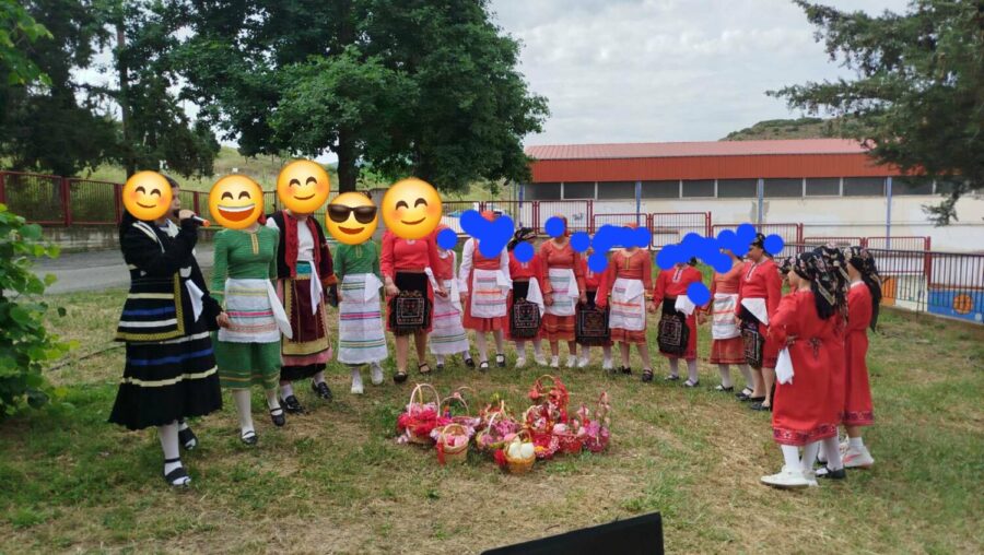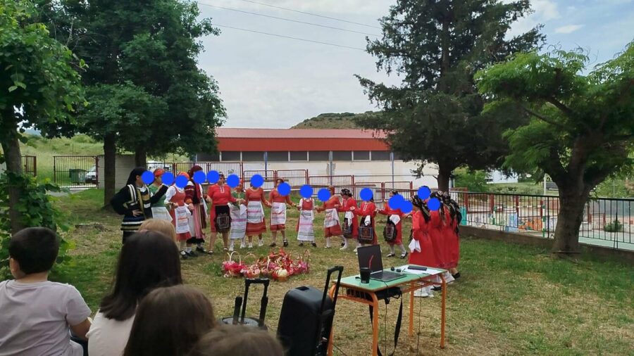 Στο πρώτο μέρος της εκδήλωσης, το προαύλιο του σχολείου μετατράπηκε σε μια ζωντανή εικόνα της θεσσαλικής παράδοσης. Τα κορίτσια των μεγαλύτερων τάξεων, φορώντας πανέμορφες παραδοσιακές φορεσιές και κρατώντας στολισμένα καλαθάκια με ανοιξιάτικα λουλούδια, μάγεψαν το κοινό με τις μελωδικές τους φωνές και τους χορούς τους. Τραγούδησαν τρία χαρακτηριστικά “σεργιανοτράγουδα” – “Βγάτε πέντε λυγερές”, “Ήρθαν τα Πασχαλιόγιορτα” και “Ανοίξτε Λουλουδάκια μου” – ενώ στη συνέχεια χόρεψαν παραδοσιακούς χορούς της περιοχής, υπό τους ήχους ζωντανής μουσικής.