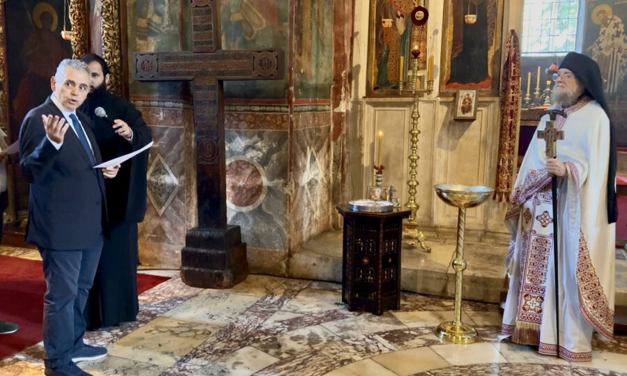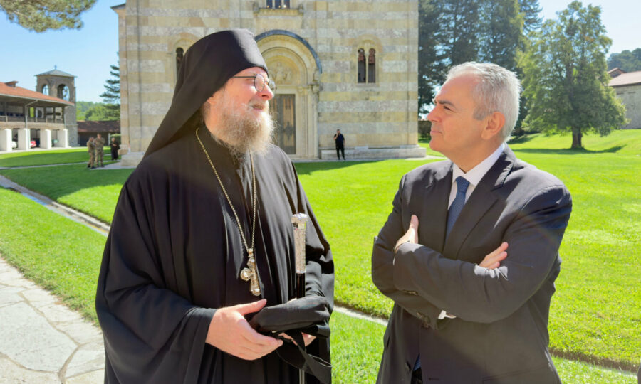 Ο ΓΓ της ΔΣΟ επισήμανε ότι «η Μονή που σήμερα έχουμε την ευλογία να βρισκόμαστε ως ταπεινοί προσκυνητές, ιδρυμένη τον 14ο αιώνα από τον βασιλιά Στέφανο Ούρος Γ΄ Ντετσάνσκι, δεν είναι μόνο κόσμημα της σερβικής Ορθοδοξίας. Είναι ένα κόσμημα ολοκλήρου του βυζαντινού και ορθόδοξου κόσμου. Ο μεγαλοπρεπής ναός, που είναι αφιερωμένος στον Χριστό Παντοκράτορα, συνδυάζει τη βυζαντινή αρχιτεκτονική παράδοση με δυτικά αρχιτεκτονικά στοιχεία. Αποτελεί μαρτυρία του δημιουργικού διαλόγου Ανατολής και Δύσης στα μεσαιωνικά Βαλκάνια, που, επιτρέψτε μου να πω, συνιστά εντέλει μια διαχρονική επιταγή. Γιατί και σήμερα οφείλουμε, διατηρώντας ζωντανά τα βυζαντινά και εθνικά μας χαρακτηριστικά, να συνομιλούμε δημιουργικά με τον δυτικό χριστιανισμό, καθώς και οι δύο παραδόσεις συγκροτούν τον ενιαίο χριστιανικό πυλώνα του ευρωπαϊκού πολιτισμού, σε μια Ευρώπη, που, δυστυχώς, δείχνει να λησμονεί τις χριστιανικές της ρίζες και αξίες».