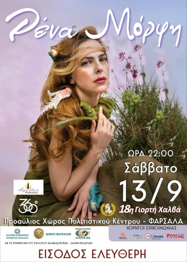 Μία μοναδική συναυλία θα δώσει στα Φάρσαλα το ερχόμενο Σάββατο, 13 Σεπτεμβρίου, η καταξιωμένη ερμηνεύτρια Ρένα Μόρφη, στο πλαίσιο των εκδηλώσεων για την 18η Γιορτή Χαλβά.