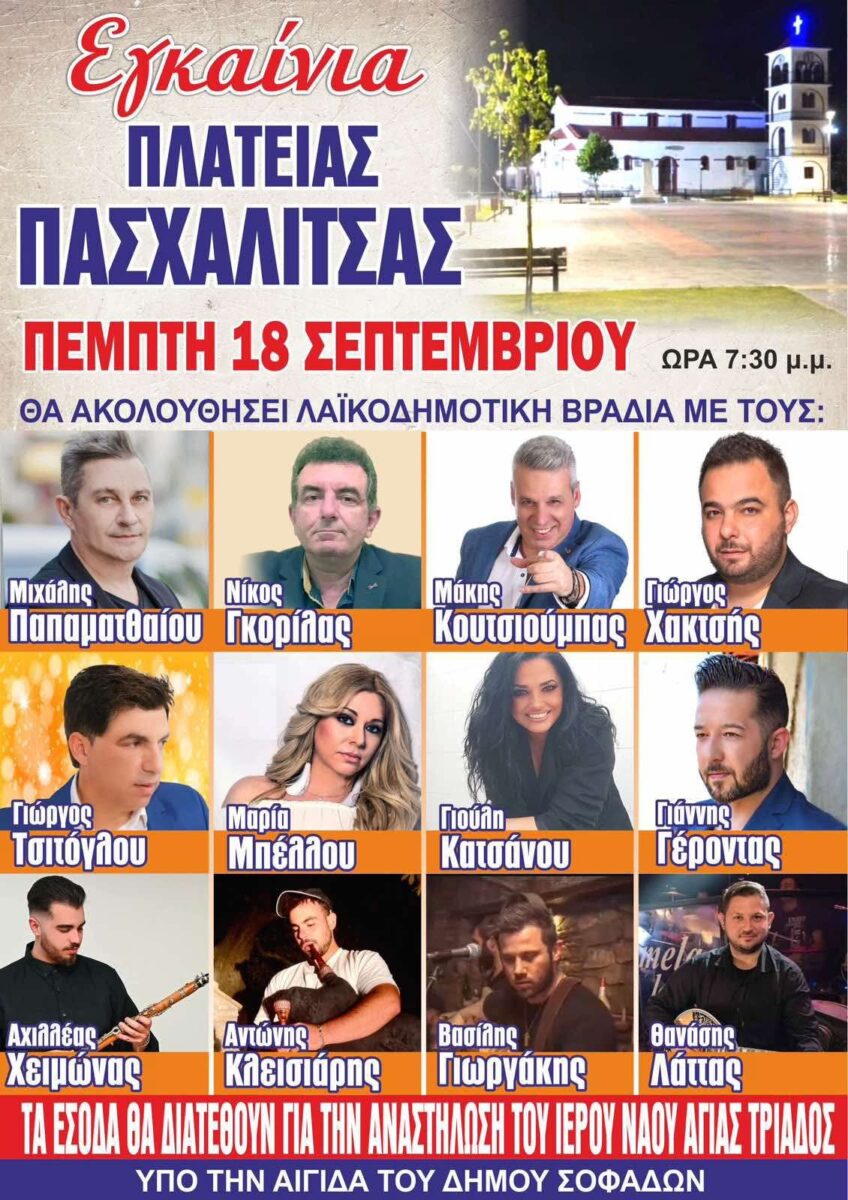 Την Πέμπτη 18 Σεπτεμβρίου στις 7:30 μ.μ. θα γίνουν τα εγκαίνια της νεάς πλατείας στην Πασχαλίτσα του Δήμου Σοφάδων.