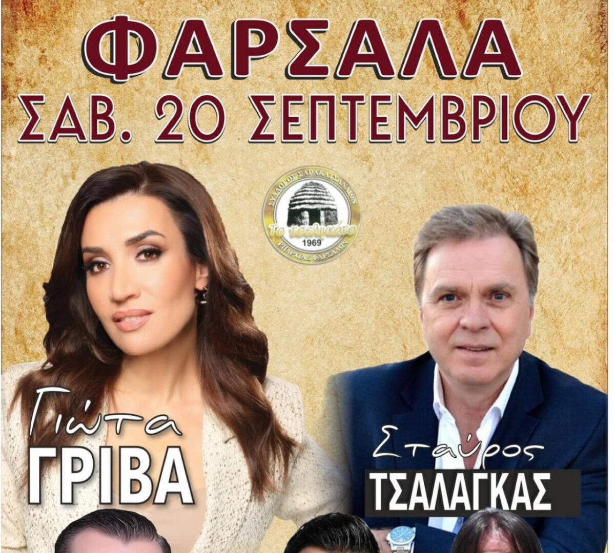 Μια μοναδική βραδιά διοργανώνει ο Σύλλογος Σαρακατσαναίων επαρχίας Φαρσάλων με την Γιώτα Γρίβα, το Σάββατο 20 Σεπτεμβρίου στην Σκεπαστή Αγορά στα Φάρσαλα.