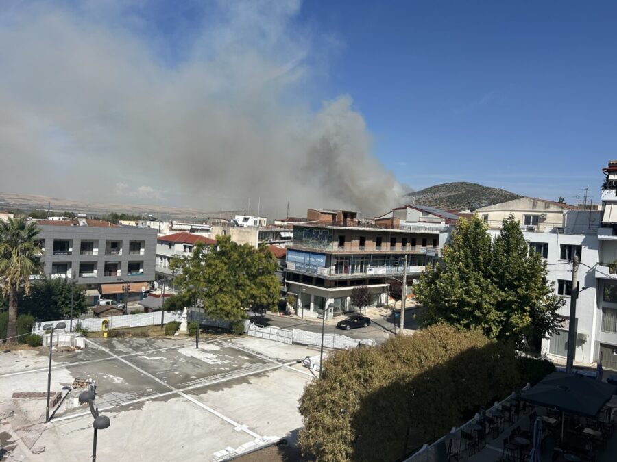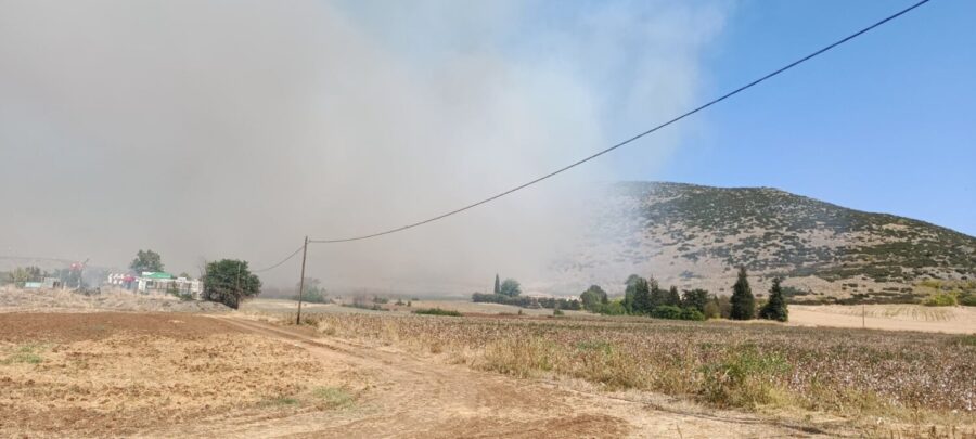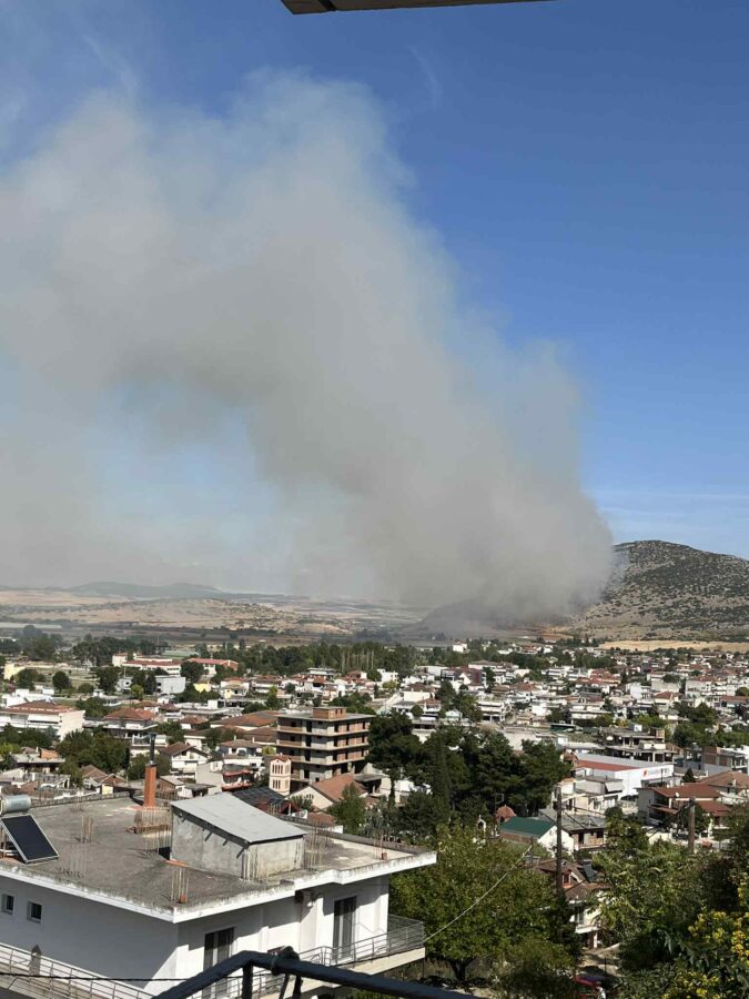 Η φωτιά είναι εμφανής από όλη την πόλη των Φαρσάλων.