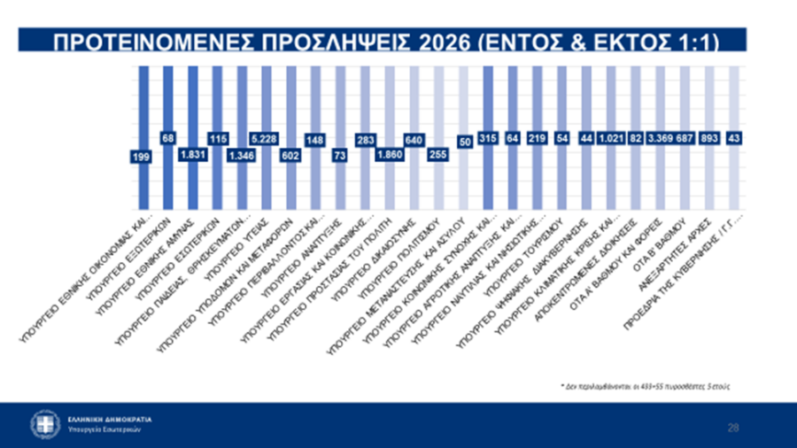 Ακολουθεί η διαγραμματική απεικόνιση των προσλήψεων το 2026: