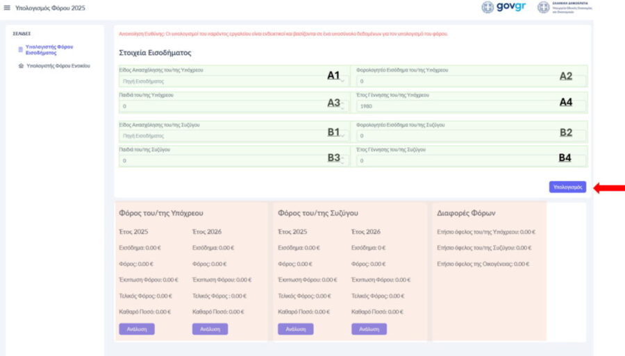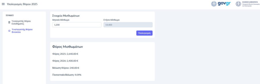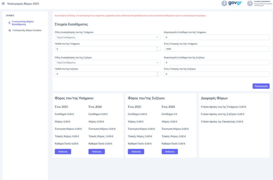 Η πλατφόρμα περιλαμβάνει δύο βασικά εργαλεία: τον Υπολογιστή Φόρου Εισοδήματος και τον Υπολογιστή Φόρου Ενοικίου.