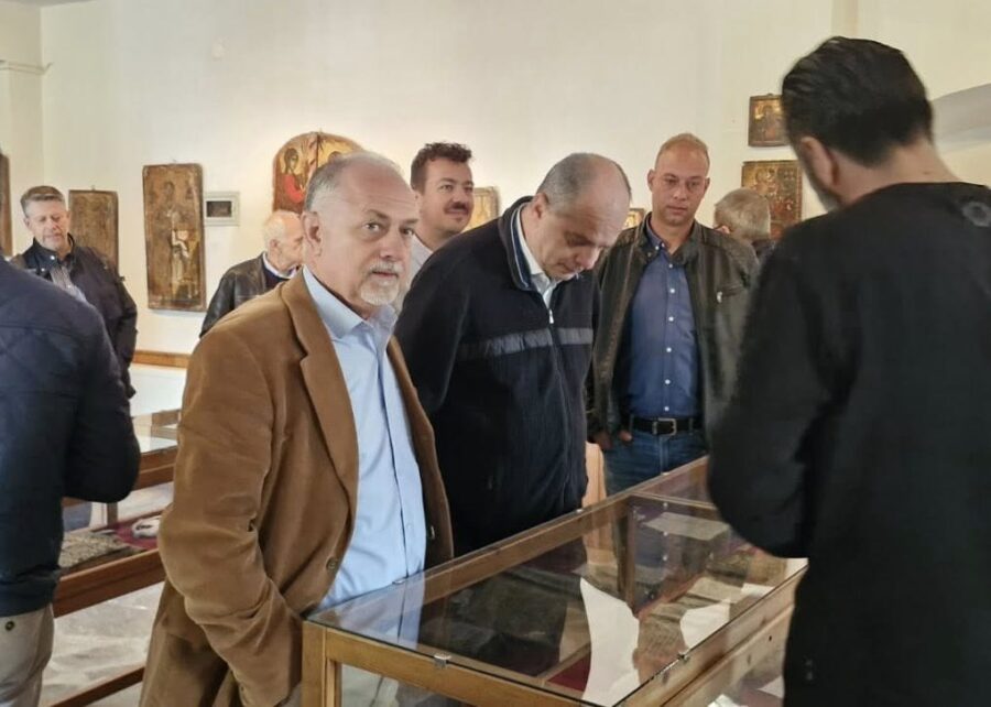Τέλος, ο κ. Καπετάνος επισκέφθηκε τα δύο μικρά, αλλά πολύτιμα μουσεία του χωριού, με παραδοσιακά εργαλεία, φορεσιές και εικόνες ορθόδοξης πίστης που χρονολογούνται από τον 16ο αιώνα.