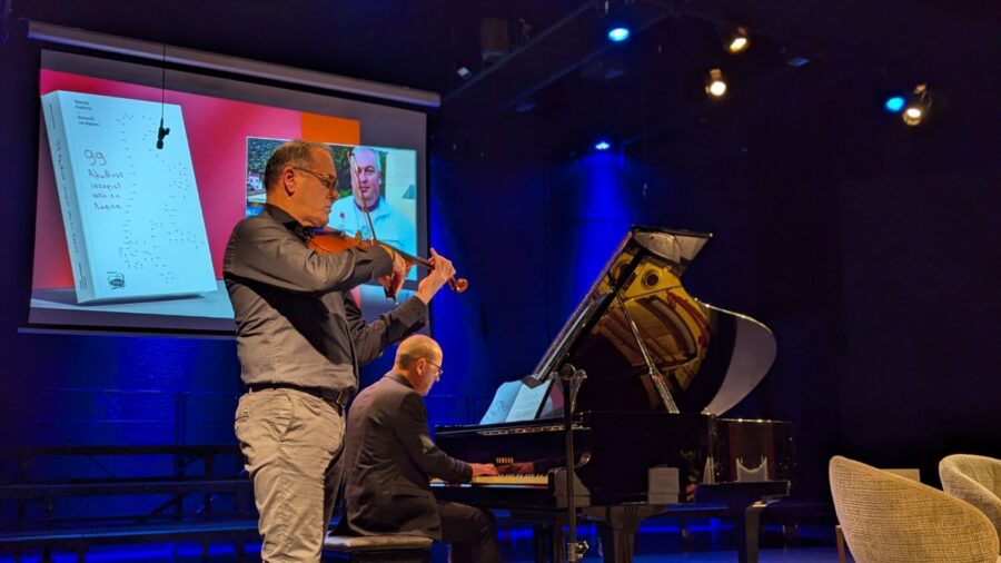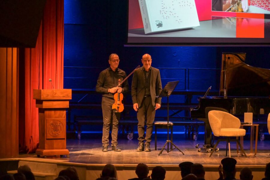 Η εκδήλωση, που συνδιοργανώθηκε από τον Δήμο Λαρισαίων, τον Σύλλογο Καρκινοπαθών Λάρισας και το βιβλιοπωλείο «Άνεμος» και έγινε με την υποστήριξη της Περιφέρειας Θεσσαλίας άνοιξε με ένα σύντομο μουσικό ρεσιτάλ. Ο διευθυντής του Δημοτικού Ωδείου, κ. Χρήστος Λενούτσος στο πιάνο, μαζί με τον κ. Απόστολο Μητρά στο βιολί, μετέτρεψαν την έναρξη της παρουσίασης σε μια μοναδική μουσική εμπειρία.