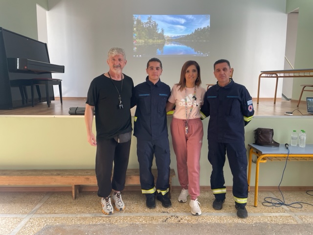 Παράλληλα, στο αμφιθέατρο του σχολείου, πραγματοποιήθηκε ενημερωτική ομιλία από την Εθελοντική Ομάδα Διάσωσης και Αντιμετώπισης Καταστροφών (ΕΟΔΥΑ). Οι κ.κ. Δημήτριος και Φίλιππος Καλογερόπουλος εκπαίδευσαν τους μαθητές σε βασικές διασωστικές τεχνικές και παροχή πρώτων βοηθειών, δίνοντας έμφαση στη διαχείριση τραυματισμών κατά τη διάρκεια της άσκησης και στην αξία του εθελοντισμού. Η βιωματική αυτή δράση εντυπωσίασε τους μαθητές, που συμμετείχαν ενεργά και έδειξαν μεγάλο ενδιαφέρον για τη σημασία της προσφοράς και της αλληλεγγύης.
