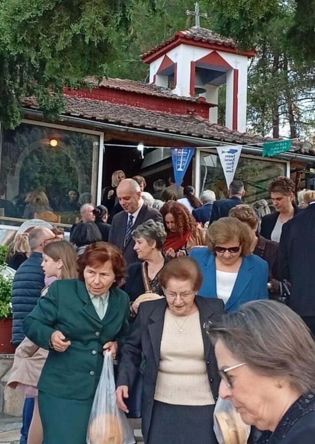 Μετά τη λειτουργία, ο κ. Καπετάνος αντάλλαξε ευχές με πολίτες και φίλους, εκφράζοντας τη χαρά του που βρέθηκε ανήμερα της εορτής στην ιδιαίτερη πατρίδα του.