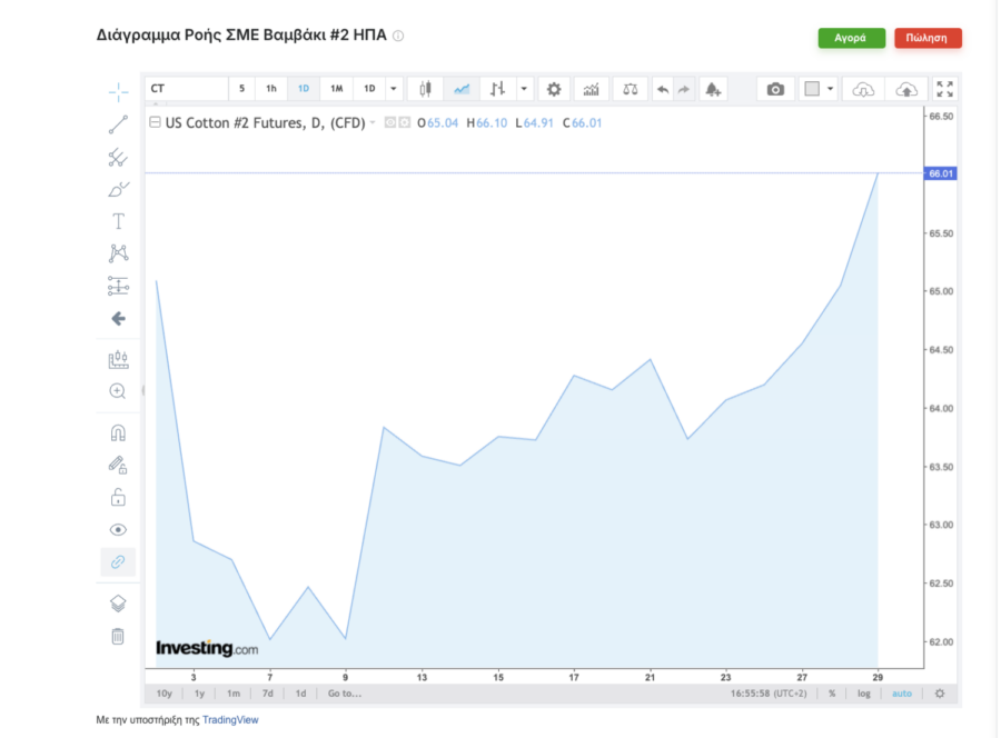 Ελαφρά ανοδική κίνηση καταγράφουν οι τιμές των Συμβολαίων Μελλοντικής Εκπλήρωσης (ΣΜΕ) του βαμβακιού στις διεθνείς αγορές, καθώς η προσοχή των επενδυτών στρέφεται στη συνάντηση κορυφής μεταξύ του Προέδρου των ΗΠΑ, Ντόναλντ Τραμπ, και του Κινέζου Προέδρου Σι Τζινπίνγκ, η οποία αναμένεται να πραγματοποιηθεί αύριο, Πέμπτη (30/10), στη Νότια Κορέα.