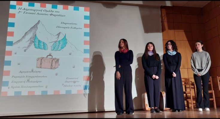 Αμέσως μετά, η συγγραφέας Φωτεινή Μυλωνά Ραΐδη απηύθυνε έναν σύντομο χαιρετισμό προς το κοινό, καλωσορίζοντας τους παρευρισκόμενους και εκφράζοντας τη χαρά της για τη συνεργασία με τον Μορφωτικό Σύλλογο και το 2ο Γενικό Λύκειο Φαρσάλων.