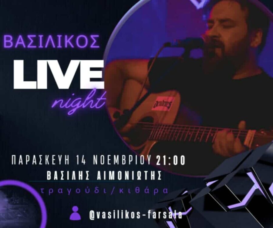Ο Βασίλης Αιμονιώτη απόψε στον Βασιλικό Παρασκευή, 14/11/2025, 14:22 Εκδηλώσεις Σήμερα το βράδυ ζωντανή μουσική με τον Βασίλη Αιμονιώτη στο εστιατόριο Βασιλικός.Τηλ κρατήσεων: 6942687798 Facebook Twitter Telegram Pocket Reddit Email Εκτύπωση Ακολουθήστε το ifarsala.gr στο Google News και μάθετε πρώτοι όλες τις ειδήσεις Κάντε εγγραφή στο κανάλι ενημέρωσης του ifarsala.gr στο Viber