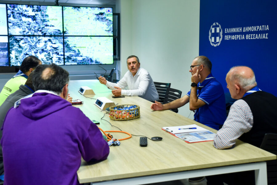 Ο κ. Κουρέτας, μαζί με τον Προιστάμενο του Τμήματος Σχεδιασμού Μέτρων Πρόληψης και σχεδίων αντιμετώπισης καταστροφών Ιωάννη Χλόπσιο, ενημέρωσαν τον κ. Αρνιακό για την γενικότερη λειτουργία του Κέντρου Πολιτικής Προστασίας, δείχνοντας σε πραγματικό χρόνο από τις 95 κάμερες που βρίσκονται τοποθετημένες σε διάφορα σημεία της Θεσσαλίας και από τους 60 και πλέον μετεωρολογικούς σταθμούς τα καιρικά φαινόμενα που επικρατούσαν το μεσημέρι του Σαββάτου σε όλη τη Θεσσαλία.