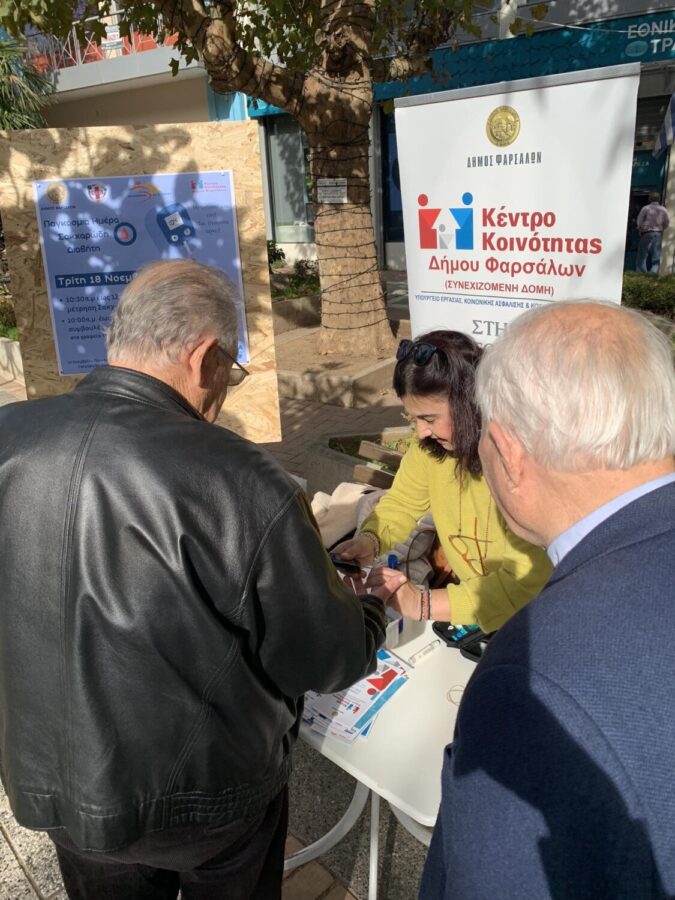 Με επιτυχία πραγματοποιήθηκε την Τρίτη 18 Νοεμβρίου 2025 η Δράση πρόληψης, ενημέρωσης και ευαισθητοποίησης για τον Σακχαρώδη Διαβήτη που διοργάνωσε το Κέντρο Κοινότητας του Δήμου Φαρσάλων σε συνεργασία με το Βοήθεια στο σπίτι και το ΚΕΠ Υγείας Δήμου Φαρσάλων.