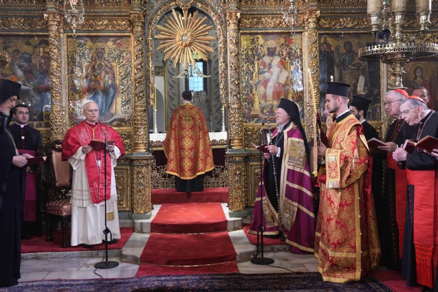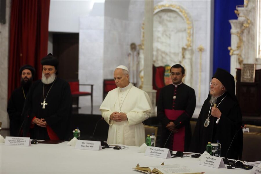Στο Οικουμενικό Πατριαρχείο έφθασε το μεσημέρι του Σαββάτου ο Πάπας Λέων ΙΔ’, στο πρώτο του αποστολικό ταξίδι από την εκλογή του, σε μία επίσκεψη ιστορική και υψηλού συμβολισμού, όσον αφορά την ενότητα του χριστιανικού κόσμου και την ειρήνη στον αλληλοσπαραγμό που βιώνει ο πλανήτης σε διάφορα σημεία.