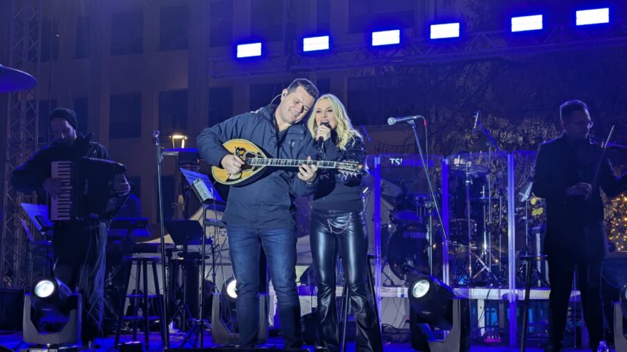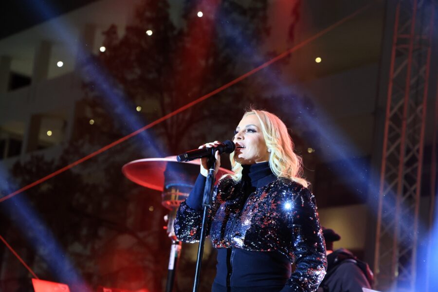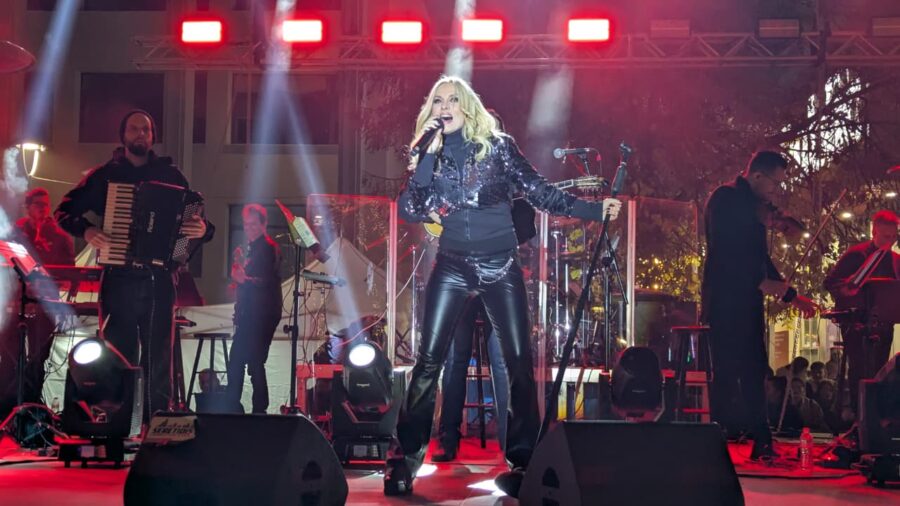 Μια πόλη που γιορτάζει, μια πόλη που χαίρεται, μια πόλη που ανοίγει την αγκαλιά της σε όλους — στους συμπολίτες μας αλλά και στους επισκέπτες που έρχονται να ζήσουν τη γιορτινή μας ατμόσφαιρα», τόνισε ο Δήμαρχος Λαρισαίων, κ.Θανάσης Μαμάκος, καλωσορίζοντας το κοινό που δημιούργησε το αδιαχώρητο στην καρδιά της πόλης, αλλά και την μαγευτική, λαμπερή Πέγκυ Ζήνα.