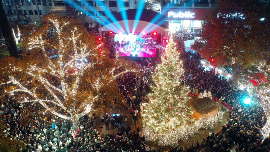«Απόψε, αφήστε τη μαγεία των Χριστουγέννων να σας αγγίξει. Να περάσετε όμορφα, να διασκεδάσετε, να χαμογελάσετε. Γιατί η πόλη μας λάμπει — και λάμπει χάρη σε εσάς. Καλά Χριστούγεννα, καλή χρονιά, με υγεία, χαρά και δύναμη για όλους!», ευχήθηκε ο κ.Μαμάκος, λίγο πριν πατήσει το button, που σκόρπισε λάμψη και φως στο κέντρο της πόλης.