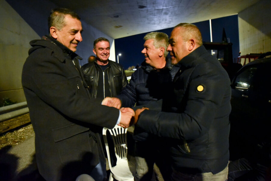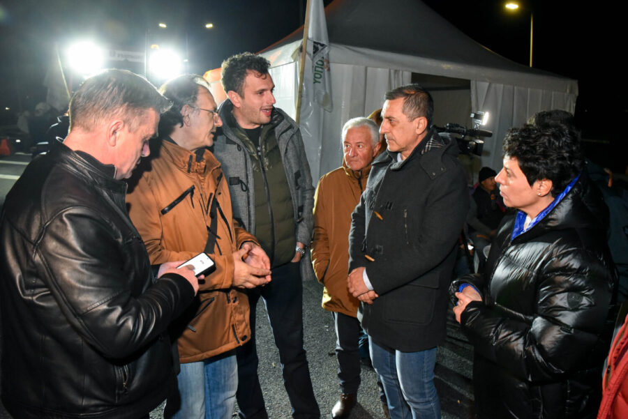 Ο Περιφερειάρχης συνοδεύονταν στο μπλόκο από τον Αντιπεριφερειάρχη Πρωτογενούς Τομέα Δημήτρη Τσέτσιλα και την χωρική Αντιπεριφερειάρχη ΠΕ Λάρισας Μαρία Γαλλιού.