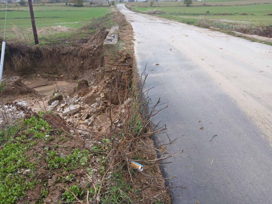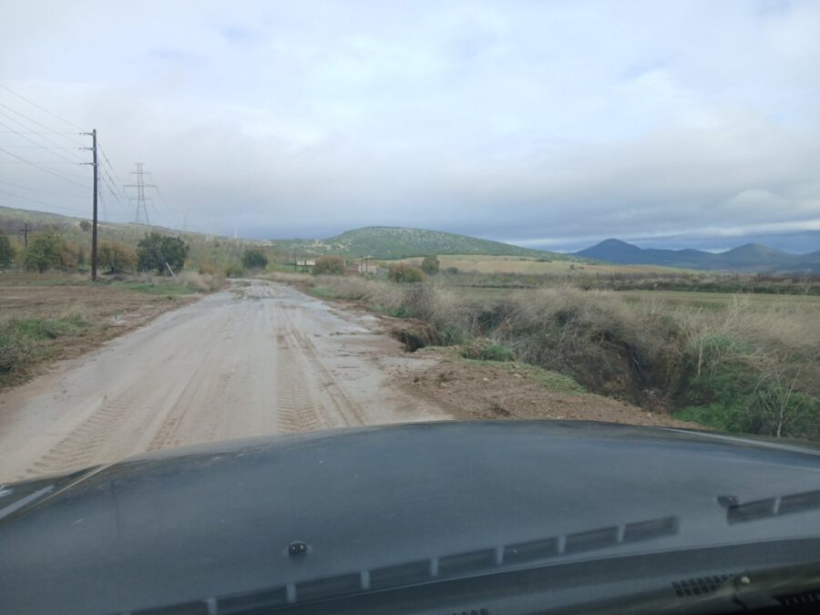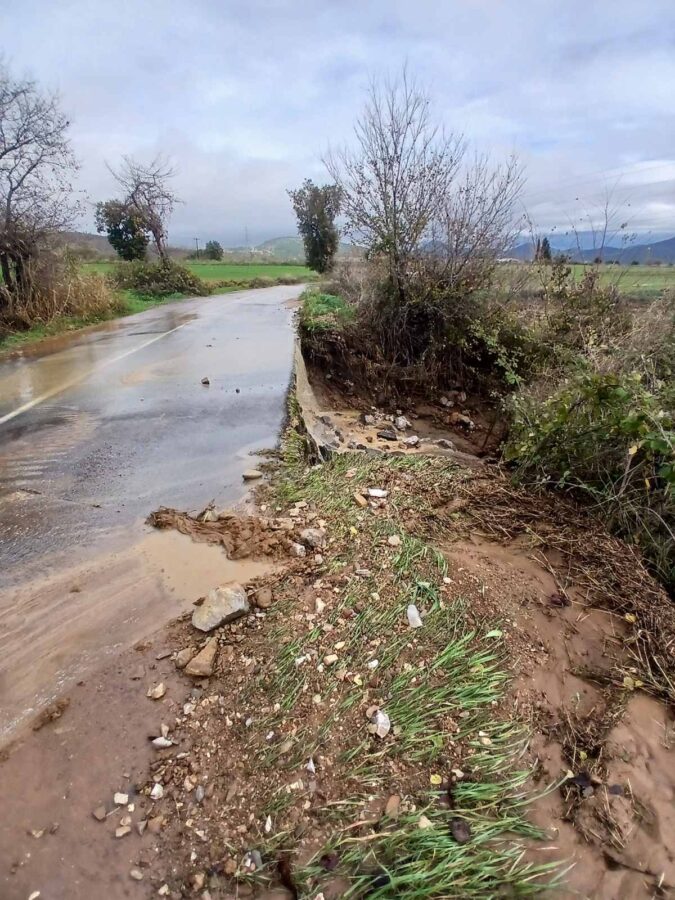 Ζημιές και πολλά φερτά υλικά εντοπίζονται και κατά μήκος του επαρχιακού δρόμου Ναρθακίου – Σκοπιάς στο Δήμο Φαρσάλων.