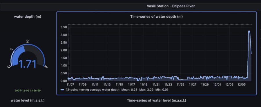 Στις 13:56 το μεσημέρι του Σαββάτου, η στάθμη του ποταμού είχε πέσει πλέον στα 1.71 μέτρα, δηλαδή σχεδόν στο μισό της μέγιστης καταγραφής.