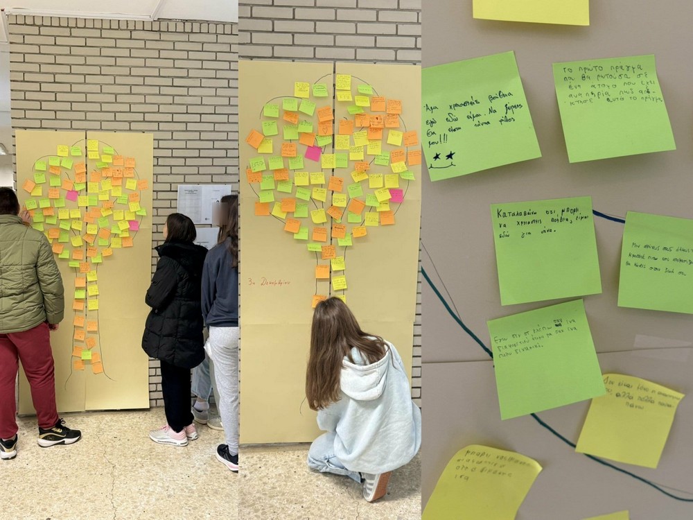 Α. Αρχικά, οι μαθητές/τριες ενημερώθηκαν για την παγκόσμια ημέρα στα τμήματά τους και τη σημασία της αναδεικνύοντας την ανάγκη σεβασμού της διαφορετικότητας. Κατόπιν, αντάλλαξαν απόψεις, είδαν ταινίες μικρού μήκους, αξιοποίησαν τις ΤΠΕ. Η κύρια δράση όλης της σχολικής κοινότητας ήταν να διατυπώσουν ο καθένας μαθητής και η καθεμιά μαθήτρια ένα μήνυμα προς έναν/μία συμμαθητή ή συμμαθήτρια, φίλο ή φίλη με αναπηρία. Ολοκλήρωσαν τη δράση τοποθετώντας τα μηνύματά τους στο «Δέντρο της Αποδοχής», μια εικαστική δημιουργία στον χώρο του Σχολείου, Ενα δέντρο στολισμένο με τα μηνύματά τους που δείχνει ότι το σχολείο μας είναι ένας χώρος ανοιχτός, φιλικός και συμπεριληπτικός.