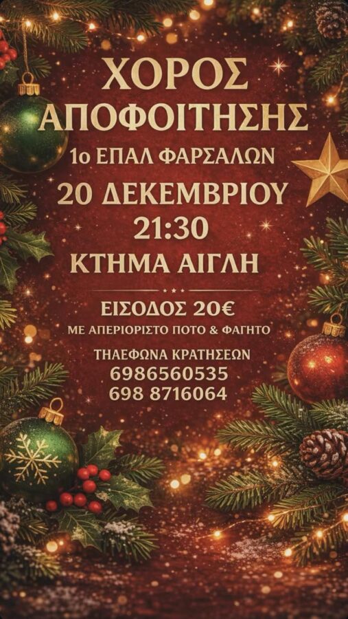 Το 1ο ΕΠΑΛ Φαρσάλων διοργανώνει τον ετήσιο χορό αποφοίτησης.