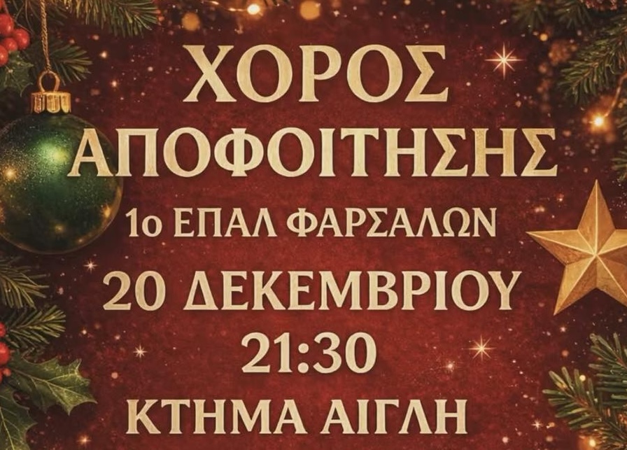 Το 1ο ΕΠΑΛ Φαρσάλων διοργανώνει τον ετήσιο χορό αποφοίτησης.