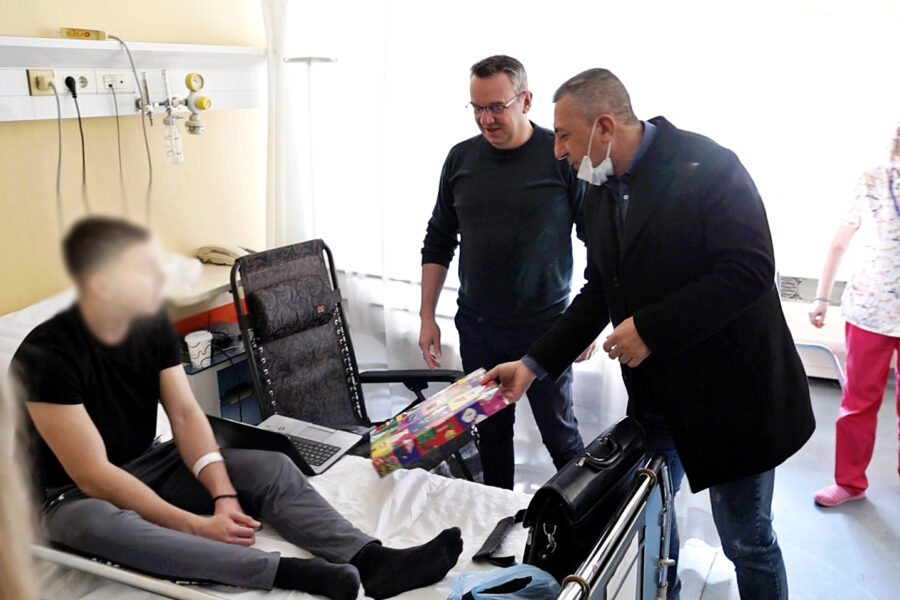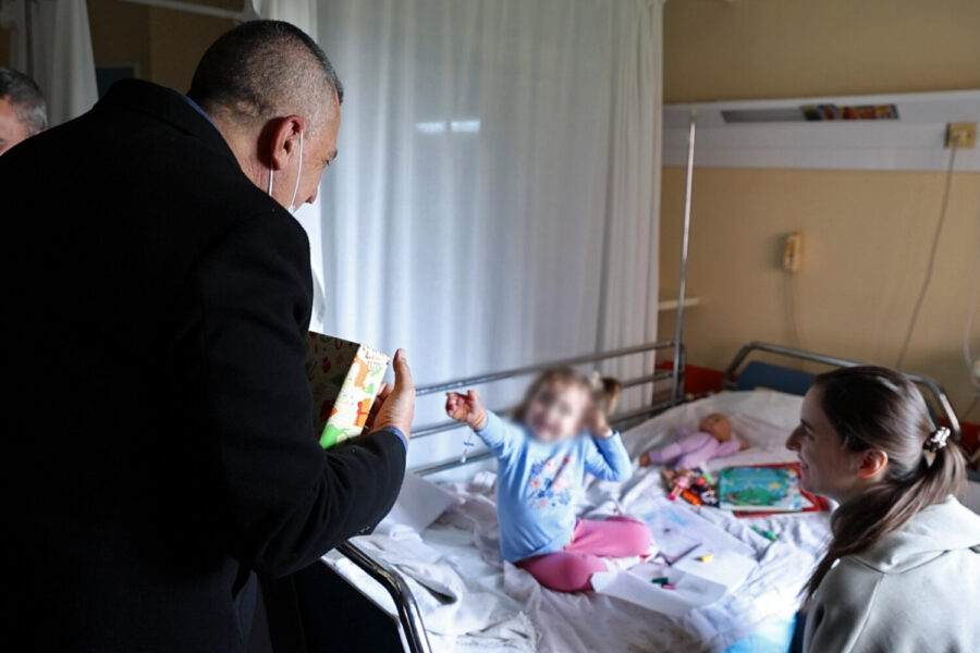 Την Παιδιατρική Κλινική του Πανεπιστημιακού Νοσοκομείου Λάρισας επισκέφτηκε το πρωί της Παρασκευής, ο Περιφερειάρχης Θεσσαλίας Δημήτρης Κουρέτας ενόψει Χριστουγέννων. Ο κ. Κουρέτας συνομίλησε με τα παιδιά που νοσηλεύονται και τους γονείς τους, ευχήθηκε γρήγορη ανάρρωση και μοίρασε δώρα. Ιδιαίτερα φορτισμένες ήταν οι στιγμές σε θαλάμους όπου νοσηλεύονταν νεογνά, με τον Περιφερειάρχη αλλά και όσους τον συνόδευαν να μην μπορούν να κρύψουν την συγκίνηση τους.