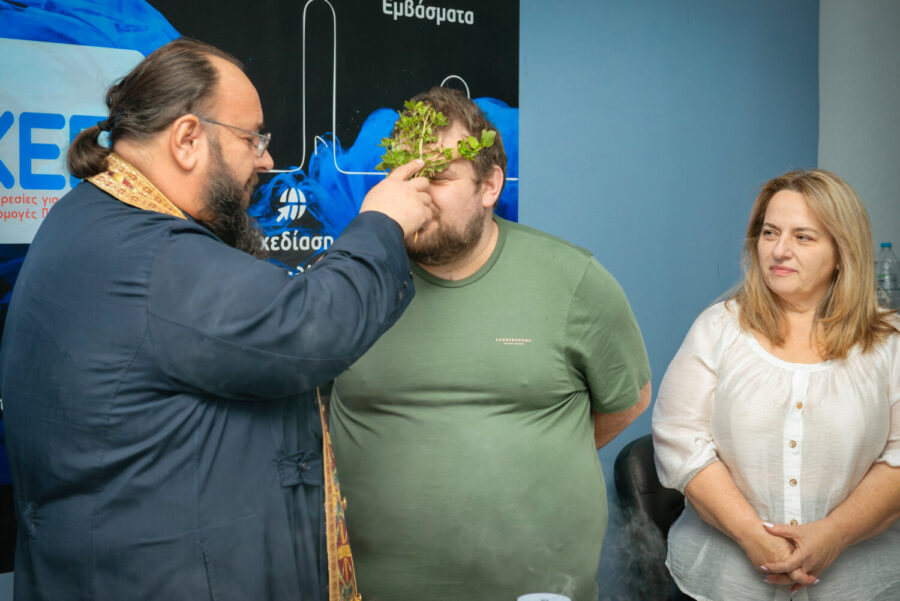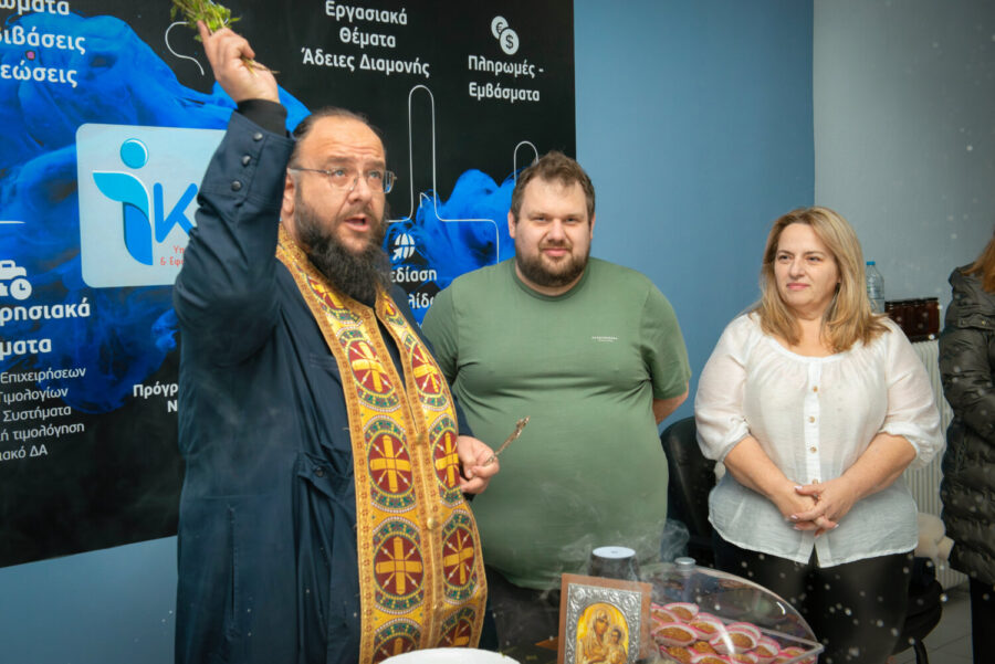 Την ιερή ακολουθία του αγιασμού τέλεσε ο π. Βασίλης εκ μέρους της Μητροπόλης Φαναριοφερσάλων, ο οποίος ευχήθηκε καλή και καρποφόρα λειτουργία, με υγεία και προκοπή σε όλους τους συνεργάτες του γραφείου.