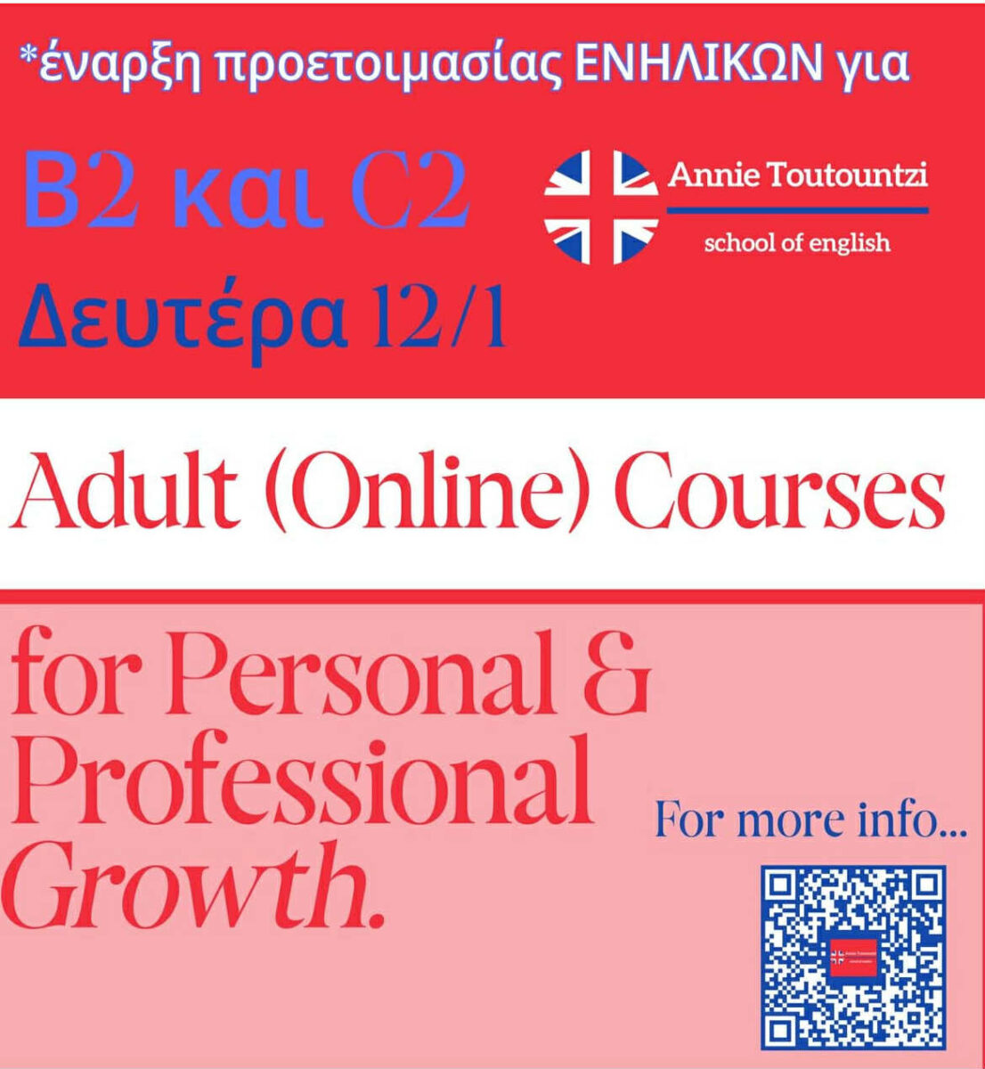 Μαθήματα Αγγλικών Ενηλίκων – Έναρξη 12/1