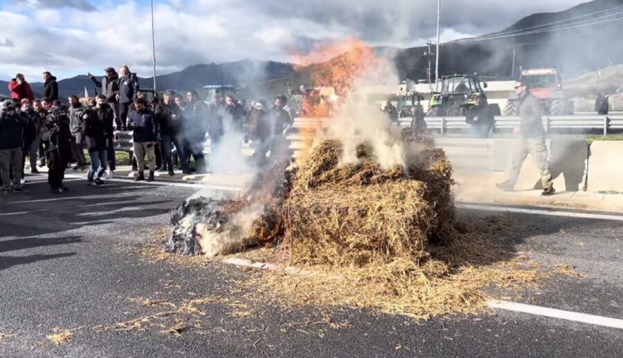 Οι αγρότες έχοντας μεταφέρει άχυρα με στις καρότσες των οχημάτων τους, τα πέταξαν στον αυτοκινητόδρομο και τα έκαψαν ως ένδειξη διαμαρτυρίας.